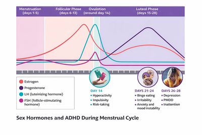 When oestrogen drops or progesterone dominates, ADHD symptoms often worsen.